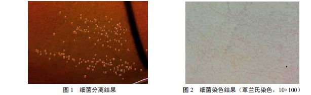 分離菌在鮮血瓊脂培養基上形成圓形、邊緣規則、表面光滑、乳白色的露滴狀小菌落,無溶血現象 (圖 1);在普通瓊脂培養基上幾乎不生長。